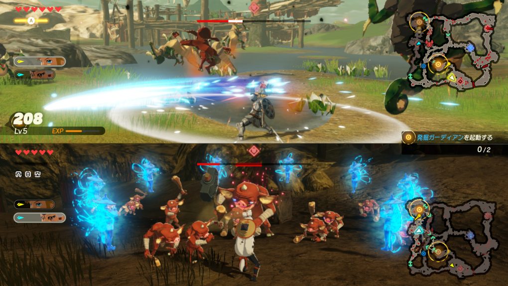 Sub-boss i boss jedinice imaju health bar, ali sporo pada. Iz tog razloga postoji weak-point gauge. Pojavi se kad god iskoristite na protivniku rod, runu, perfect dodge, special atack, zračni napad ili dovoljno jak combo. Izgleda kao uokvireni dragulj sastavljen od trokuta koji pucaju jedan po jedan dok mlatite protivnika. Nakon nekog vremena nestane, a ako ga niste uspjeli uništiti do kraja, možete nastaviti idući put kada se pojavi. Kad je kompletno uništen, pojavi se mogućnost korištenja weak-point smash poteza koji ili uništi ili dobro skrati protivnikov health bar. Utvrde također imaju health bar koji kad padne dovoljno nisko, pojavi se sub boss protivnik i nakon njegovog poraza utvrda postaje vaša. Utvrde generiraju vojsku onoj strani kojoj pripada. Kroz misiju možete skupiti punjenja za rodove, jabuke, rupee (valuta u LOZ), oružja, materijale i sl., ali i Korok seeds koje dobijete kad nađete Koroka koji se skriva (po uzoru na BOTW).