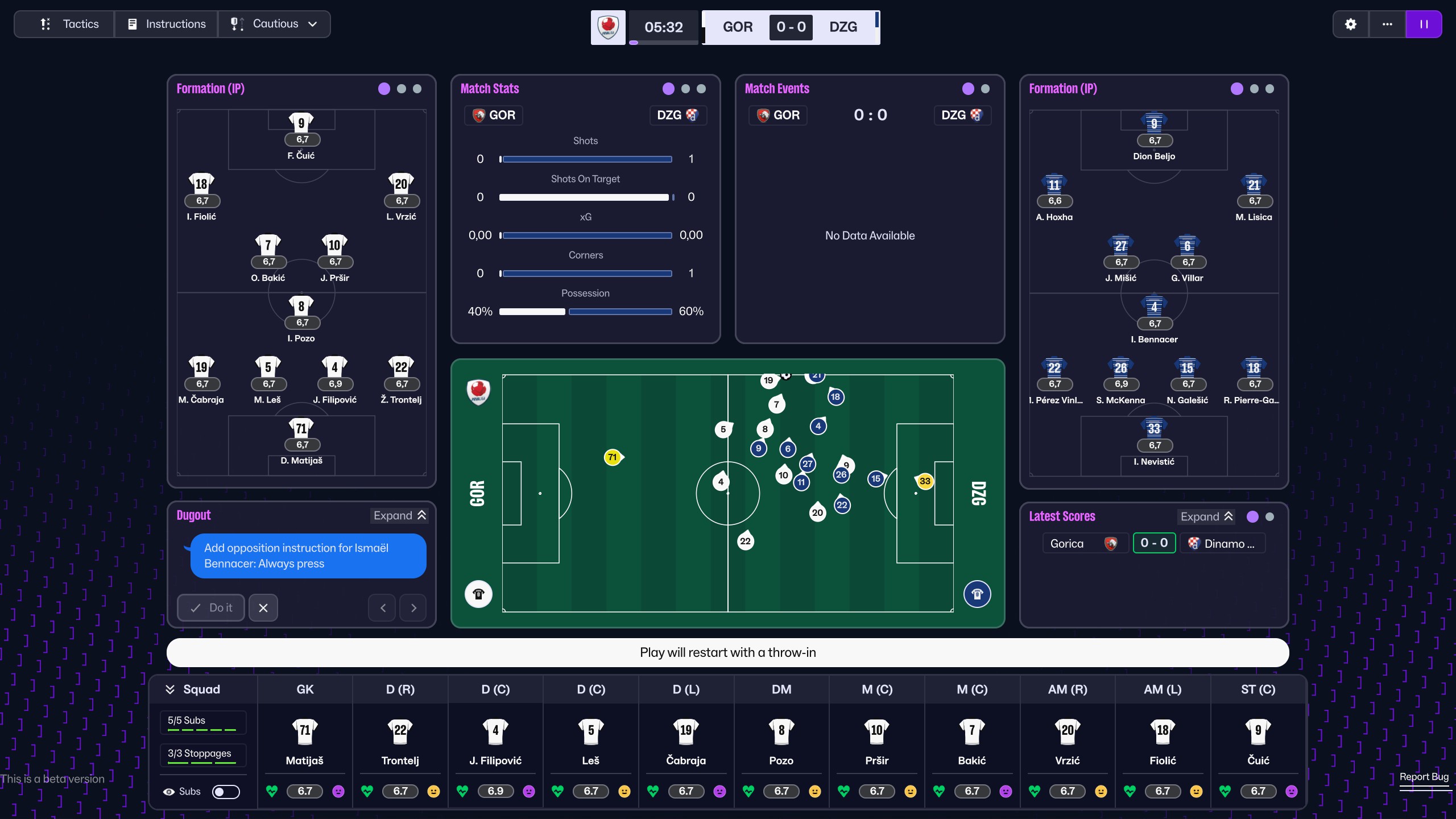 Svaki put kad izađe nova igra u serijalu, postala mi je tradicija preuzeti Goricu u domaćoj ligi i testirati igru kroz dvije sezone. Naravno, ovoga puta zabave baš i nije bilo, navodno su europski koeficijenti potpuno pokvareni i nedorađeni, pa ne možete uzeti jedan klub i graditi naciju. Ipak, i dalje postoji ona radost kada mukotrpno osvojite ligu ispred Hajduka i Dinama ili kada otkrijete skrivene talente diljem svijeta. To je bez sumnje najbolji osjećaj koji vam Football Manager može pružiti.