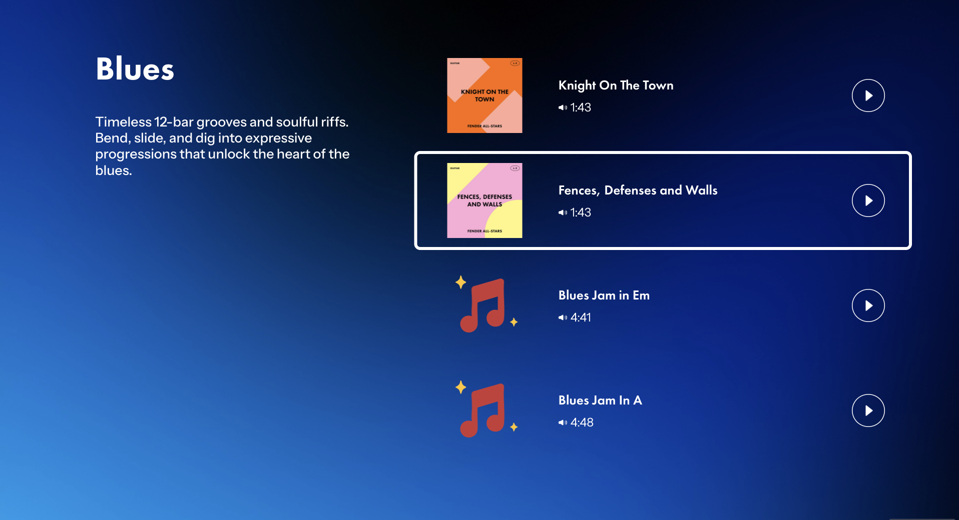 Korisnici mogu da izaberu obrazovni plan edukacije za četiri različita instrumenta: električnu gitaru, akustičnu gitaru, bas gitaru ili ukulele. Muzičarima su takođe dostupni kursevi na zahtjev, prema nivou znanja, pri čemu svaki obuhvata veliki broj lekcija, korak po korak zasnovanih na poznatim pjesmama. Putem Jam Mode režima, korisnici mogu da odaberu zanimljivu pozadinu i sviraju uz pažljivo odabrane numere različitih muzičkih žanrova, pretvarajući svoj ekran u pravu binu.