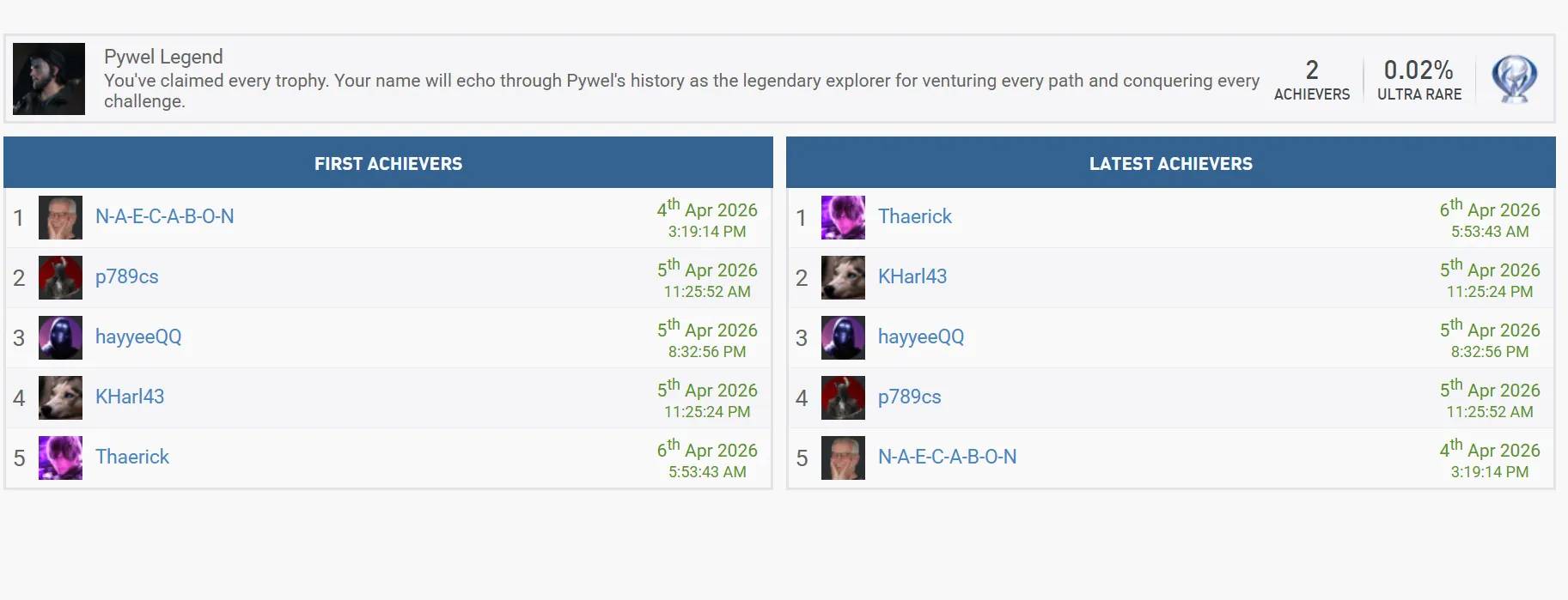 Nakon spomenutog igrača, do sada je tek pet korisnika na cijelom svijetu uspjelo dosegnuti 100% completion status, a svakome od njih je za taj pothvat trebalo oko 300 sati. Za obične smrtnike koji ne planiraju spavati samo četiri sata dnevno, ovo znači da bi lov na Platinu mogao potrajati mjesecima. Ako se netko nadao da će Pywel “očistiti” u manje od dva tjedna, računica je jasna – morat će igrati barem 20 sati svakoga dana.