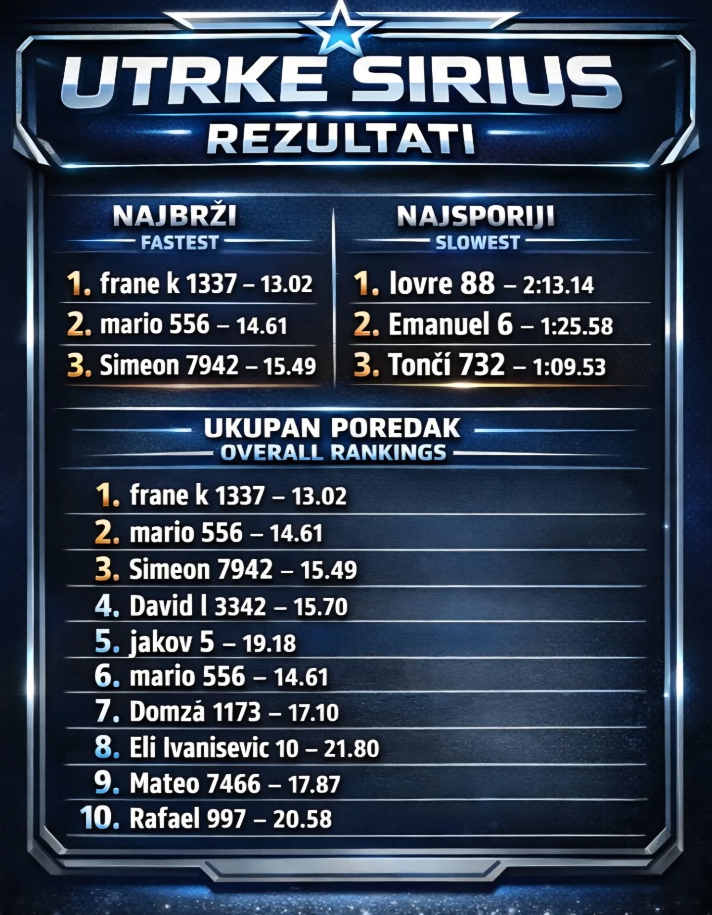 Posebnu pažnju privukla je i kategorija najsporijih, u kojoj su prvo, drugo i treće mjesto također nagrađeni. Svi nagrađeni u toj kategoriji osvojili su po jedan sat gaminga u Sirius Gamingu.