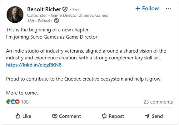 Nakon devet godina u Ubisoftu, projektni kormilar i redatelj Benoit Richer odlučio je dići sidro i sreću potražiti u nezavisnim vodama sa svojim novim studijem Servo Games.